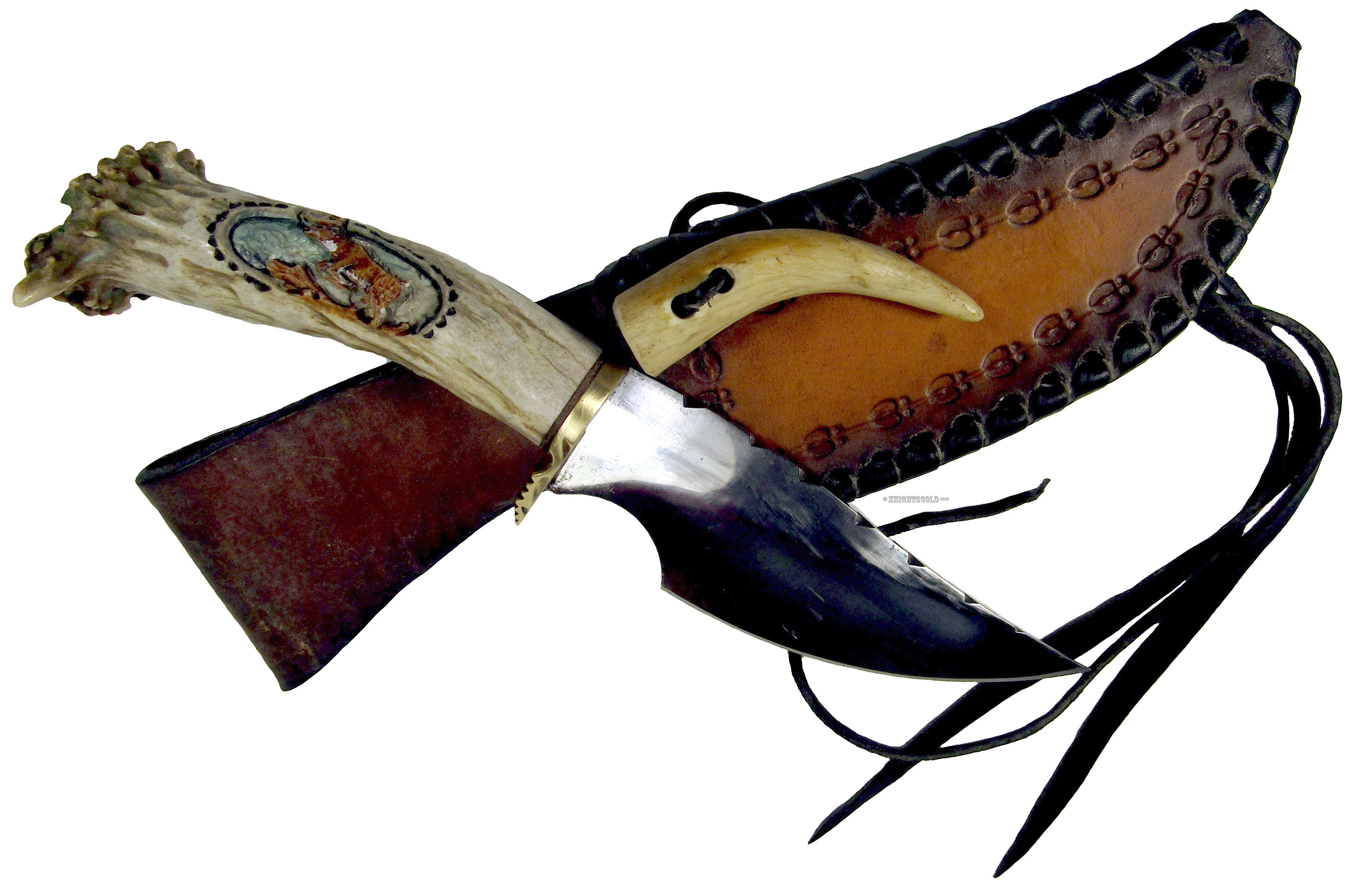 Olson Hunting Knife Elk Antler Handle Bodean Hide Works Leather Sheath 25 cm