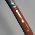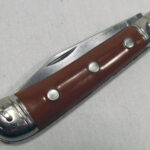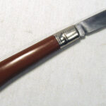 For your consideration, you are viewing an English Richards Sheffield folding knife with a 9 cm clip-point carbon steel blade, with polished nickel silver bolsters and 3 studs securing the brown bakelite handle grips scales, finished with a secure lanyard ring.