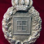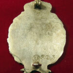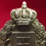 As in all of the Imperial German Army flight qualification badges, the outside perimeter is surrounded by a wreath. The left side has laurel leaves symbolizing victory, while the right side has oak leaves signifying strength and hardiness. The bow tie at the bottom joins them together signifying the joining of these two qualities. The original Observer’s badge carried an enamelled flag (now removed) which was the German tactical symbol for an Army Corps. Issued badges were thinly stamped and silvered or silver-washed metal. Privately purchased examples can be found in hollow two-piece construction or single massive silver stampings. The reverse has a barrel hinge and vertical pinback meeting a round wire catch, it has no maker marks other than the RZM Mark.